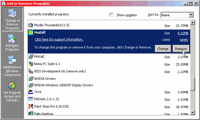 | Add/Remove Programs Applet - Win2000/WinXP (pre Vista) |