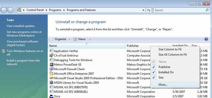 Some programs set up shortcuts to uninstall their application (so you don't need to use this applet for uninstallation), however they normally don't provide shortcuts for repair or reconfiguration. The "Uninstall Shortcuts" section shows how to create shortcuts for uninstallation or maintenance.